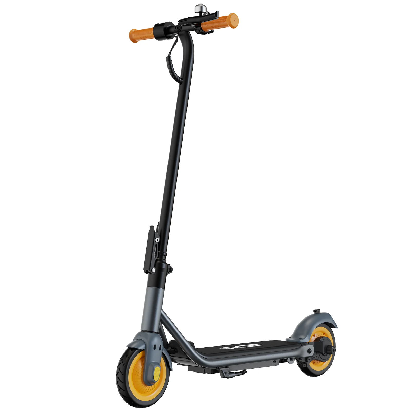 【Safety Electric Scooter】7 inch rubber solid tyres + rear drum brake & brake lever power off + bell to provide safety for your child.